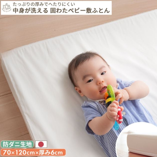 【防ダニ生地】中身が洗える 固わたベビー敷布団 ベビーサイズ | 70×120 レギュラーサイズ
