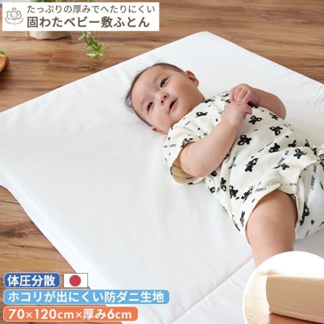 【綿100%生地 / 防ダニ生地】へたりにくい体圧分散 固わた ベビー敷布団 ベビーサイズ | 70×120 レギュラーサイズ