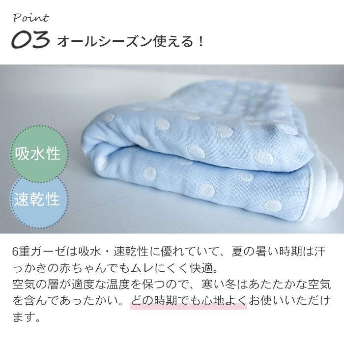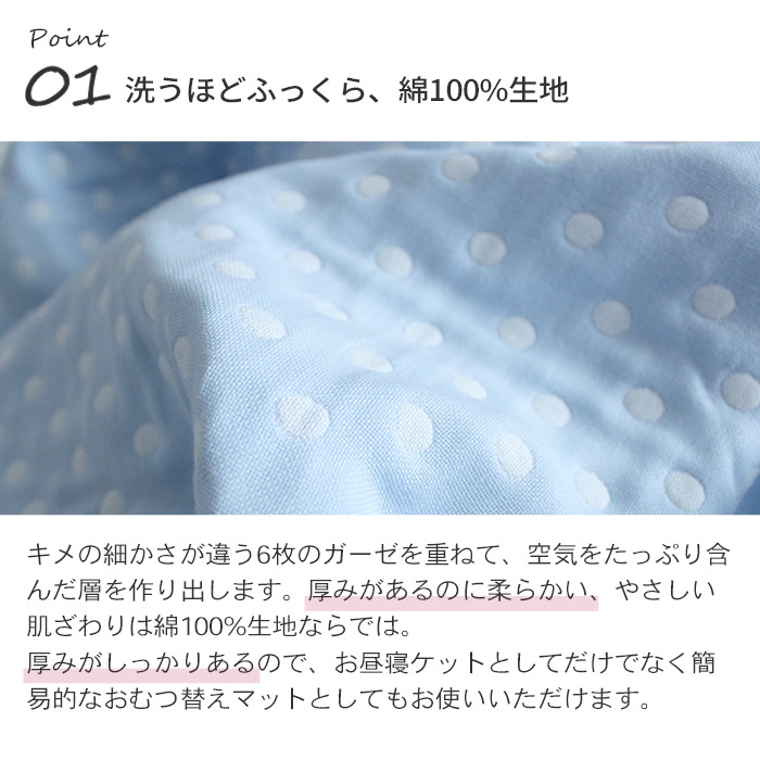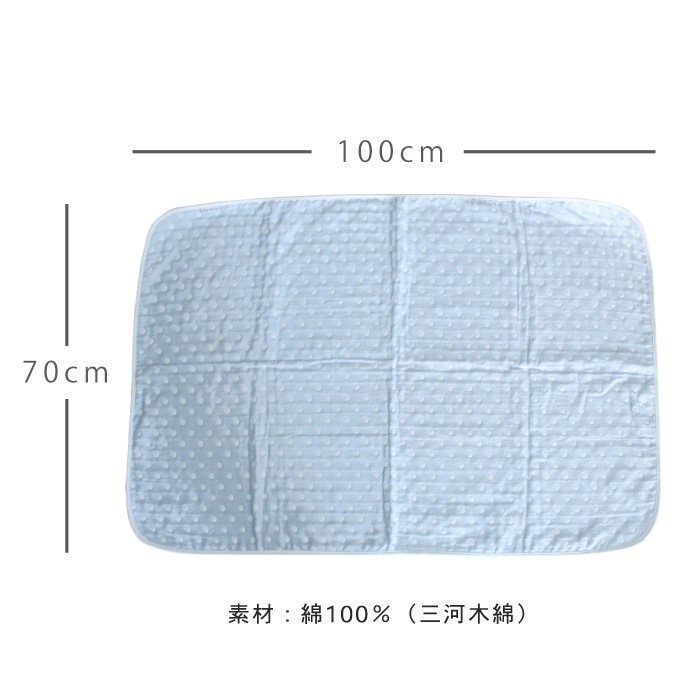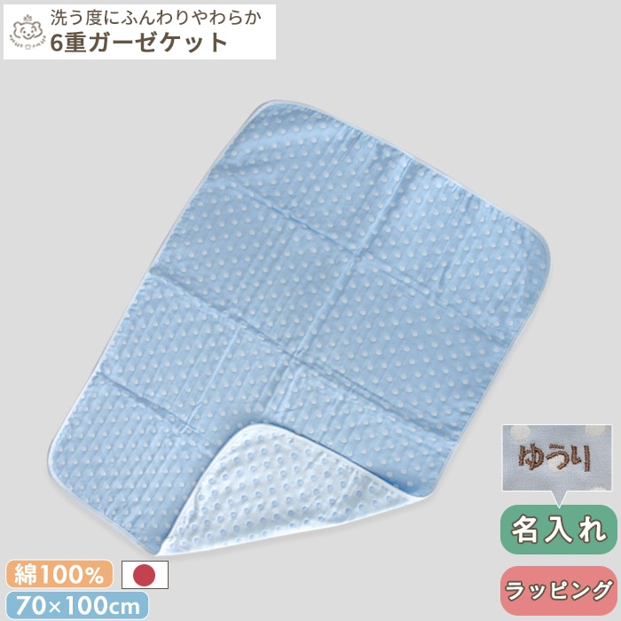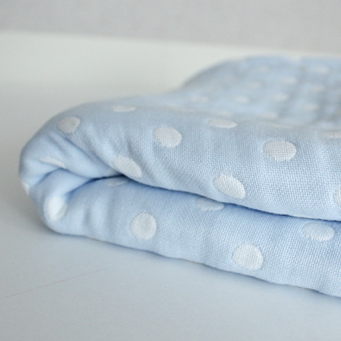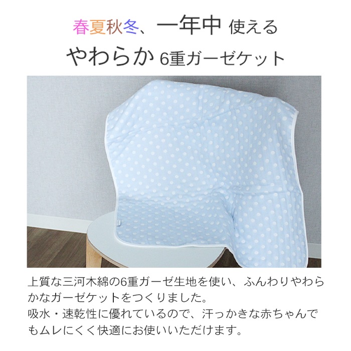 ギフト包装対応 ラッピング対応 プレゼント包装対応 送料無料 メール便 70×100cm ベビー 赤ちゃん キッズ 子供 こども 日本製 日本 三河木綿 6重ガーゼ 6重 ガーゼ 綿100% コットン おくるみ お昼寝 お昼寝ケットブランケット ひざ掛け 洗濯 ブルー 水玉 ドット 出産祝い 水色 青 ブルー 水玉 ドット