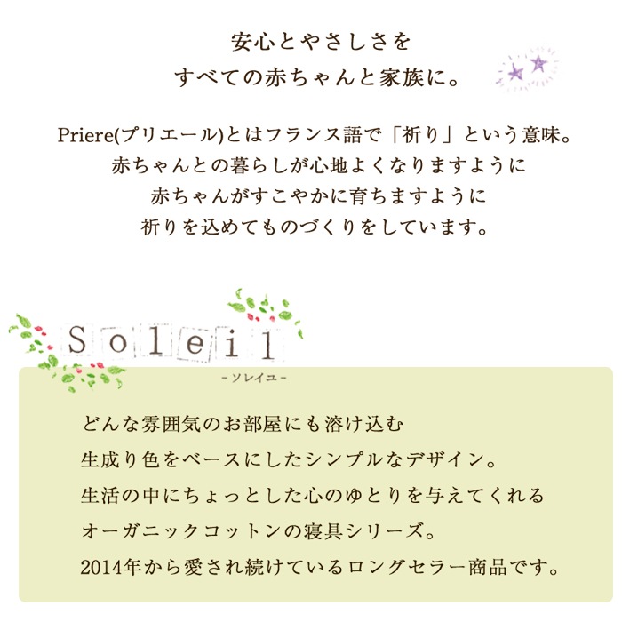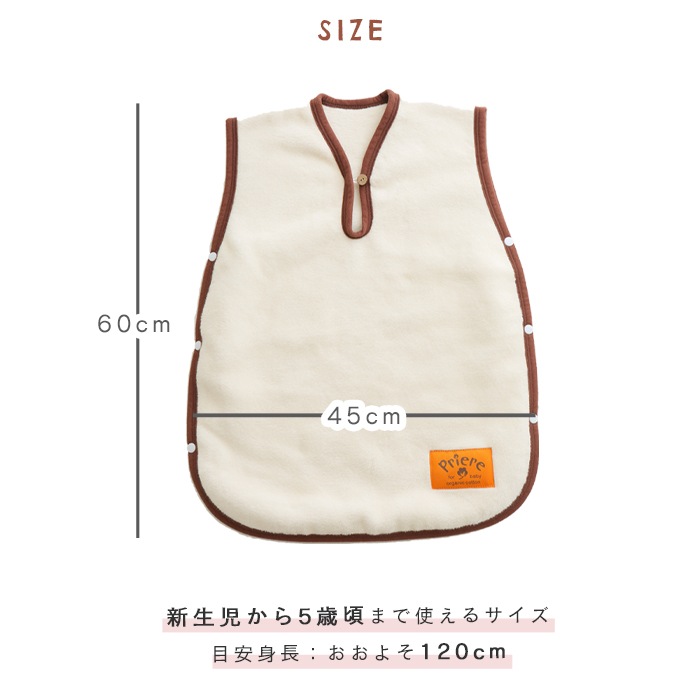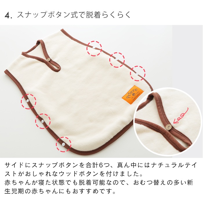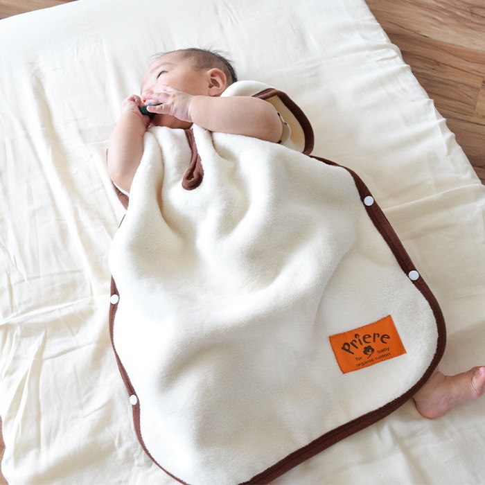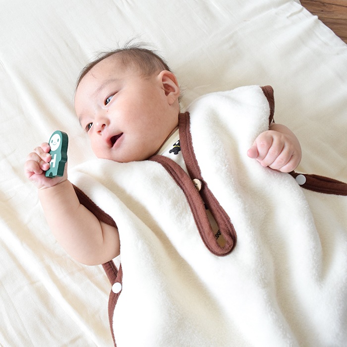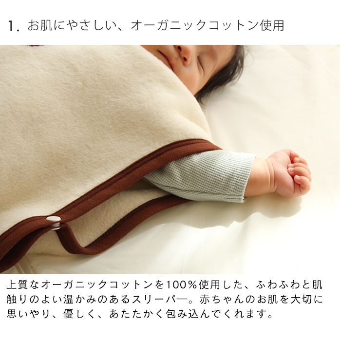 良質なオーガニックコットンを使用したナチュラルな生成り色の生地。ふんわりあったかい、オーガニックコットン100%の赤ちゃんの肌にやさしいスリーパーです。