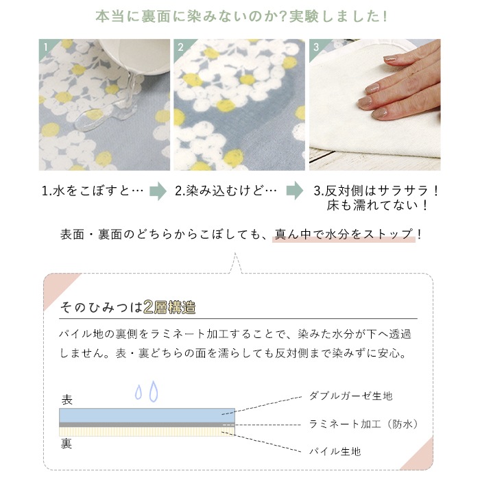 裏生地:綿100% パイル地(裏面ポリウレタンラミネート加工)