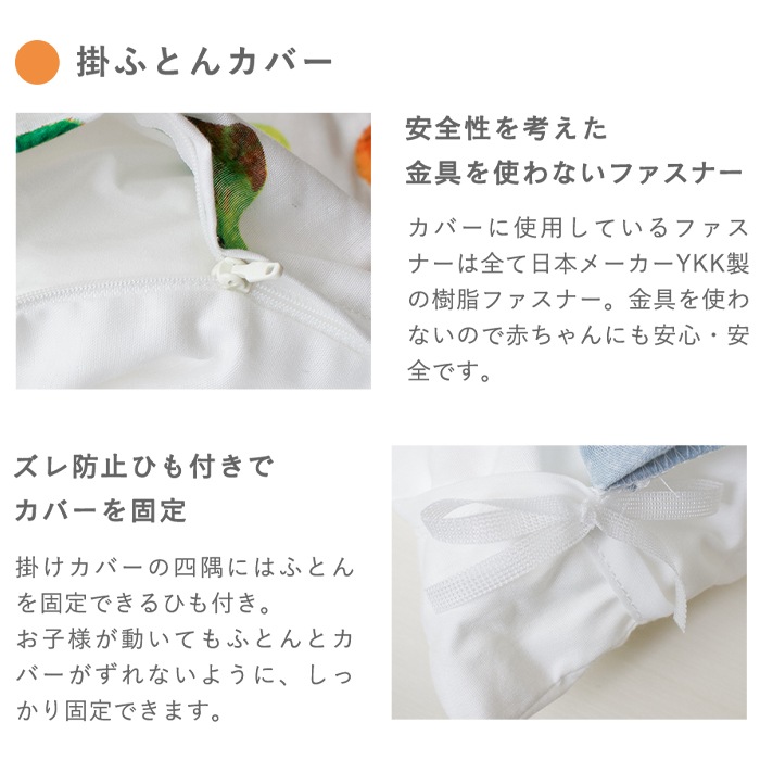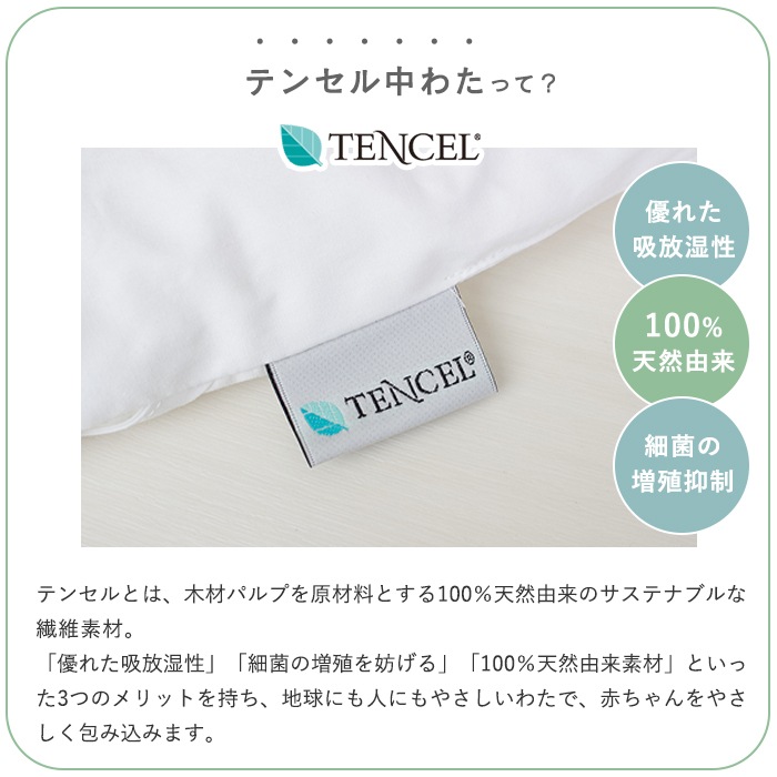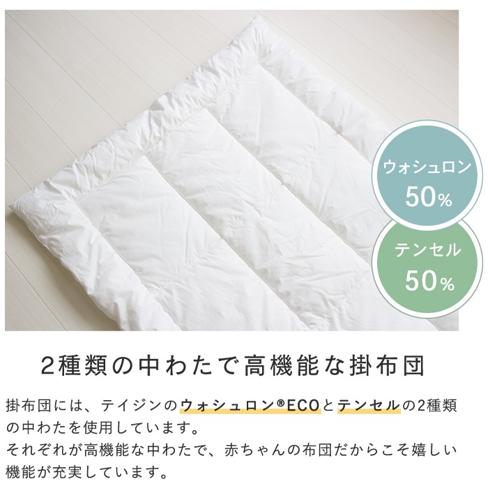 ・掛布団:側生地/綿100%、中わた/再生繊維(テンセル™)50%、ポリエステル(ウォシュロン)50%