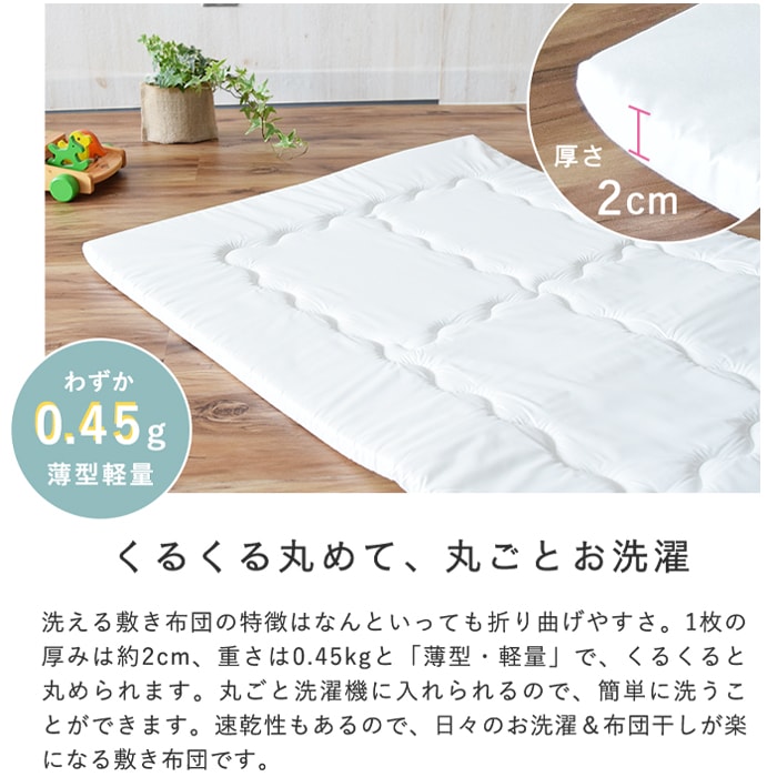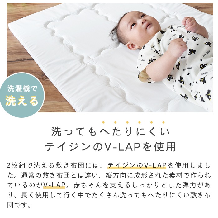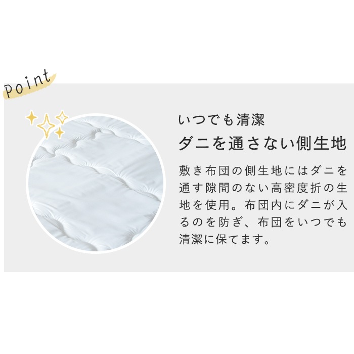 ・洗える敷布団:側生地/ポリエステル80%、綿20%、中わた/ポリエステル100%(V-LAP)