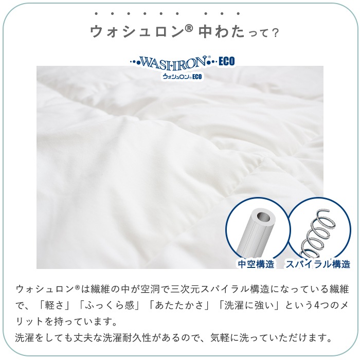 ・掛布団:側生地/綿100%、中わた/再生繊維(テンセル™)50%、ポリエステル(ウォシュロン)50%