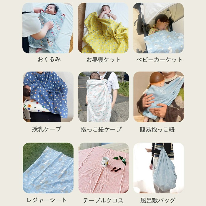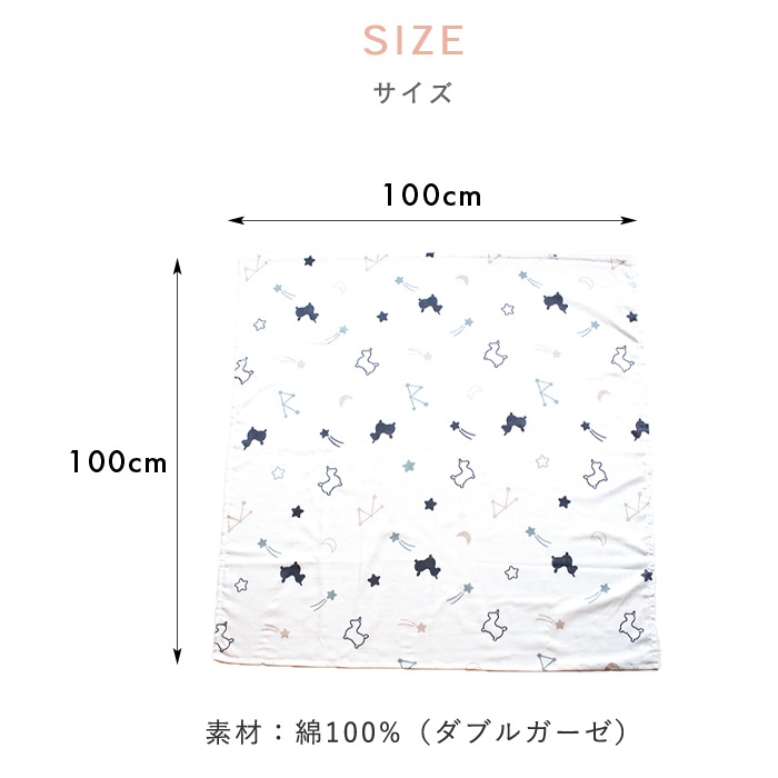 日本製・綿100%のふんわり柔らかダブルガーゼケット。おくるみや授乳ケープなど使い方はいろいろ!Rody nino nino柄。