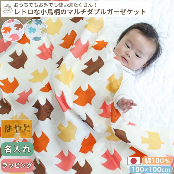 ギフト包装対応 ラッピング対応 プレゼント包装対応 送料無料 100×100cm ベビー 赤ちゃん 新生児 キッズ 日本製 ダブルガーゼ ダブル ガーゼ 夏 綿100% コットン レトロ テキスタイル おくるみ お昼寝ケット お昼寝 ガーゼケット 授乳ケープ 退院 大判 北欧 オレンジ グリーン 緑 レトロ