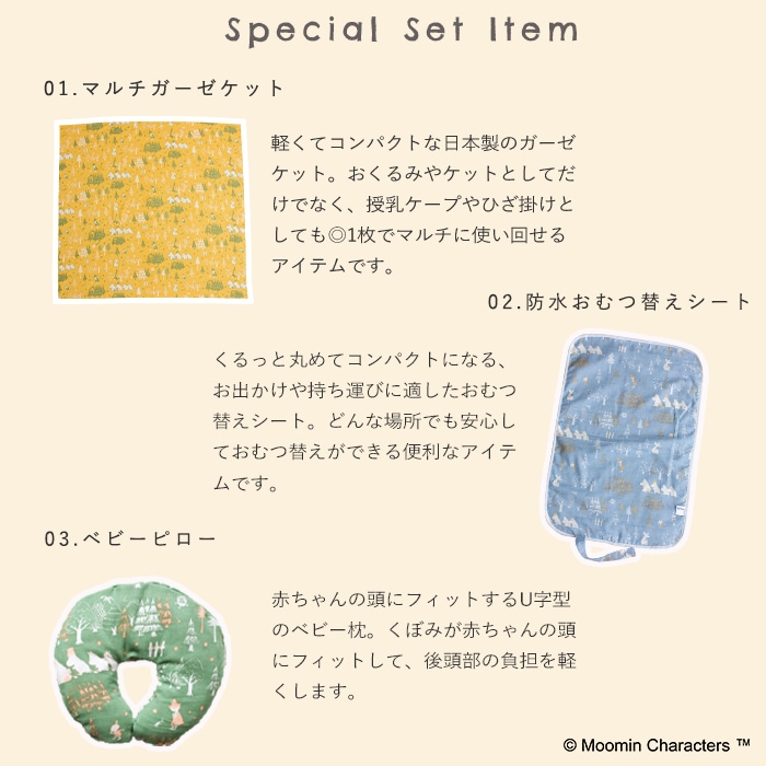ムーミン マルチガーゼケット&おむつ替えシート&ベビー枕3点セット(ギフト包装付き)