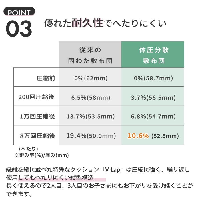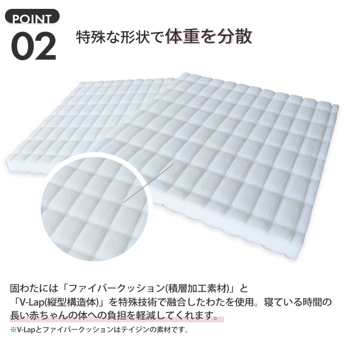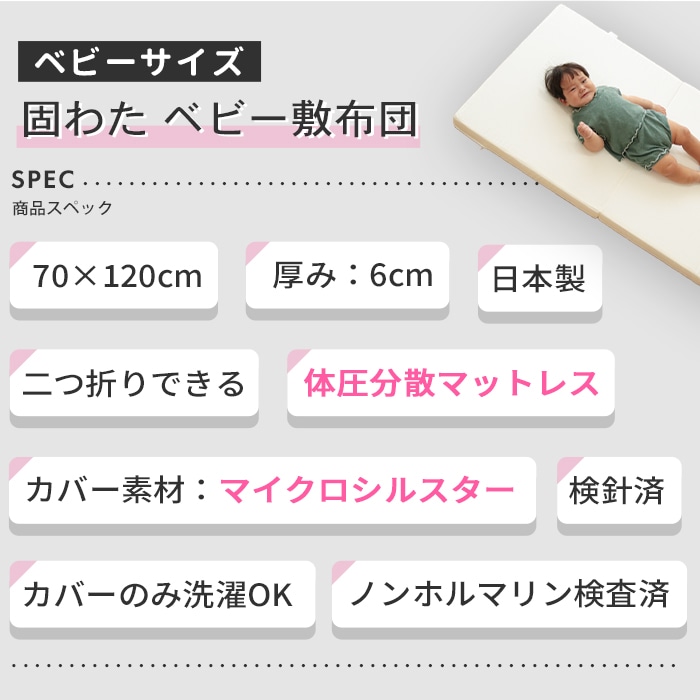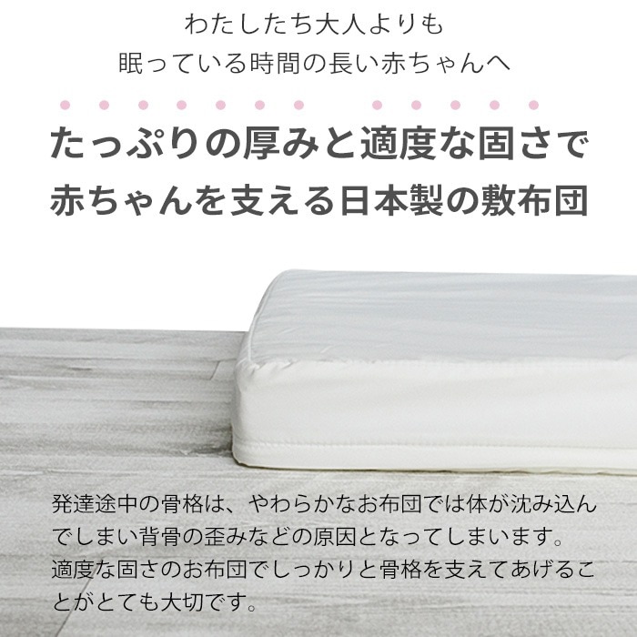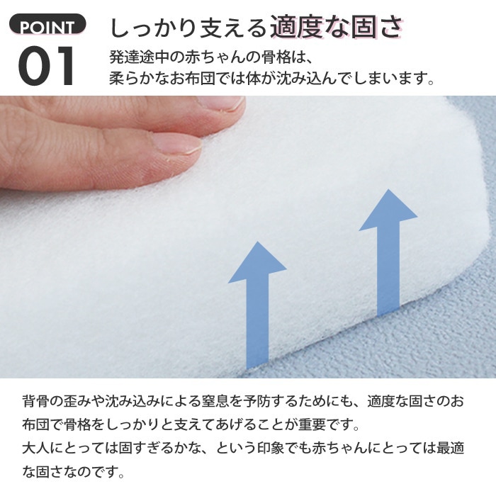 【防ダニ・ほこりが出にくい生地】へたりにくい体圧分散ベビー敷ふとん ベビーサイズ 70×120cm