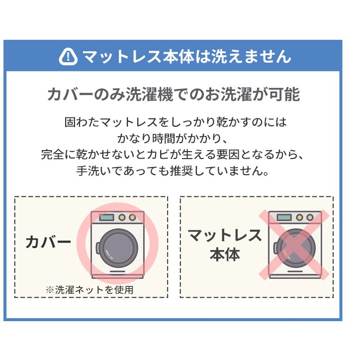 ・カバーのみ取り外して洗濯可能です。洗濯の際は、固わたを取り出してからカバーのみ洗濯ネットに入れて洗濯してください。