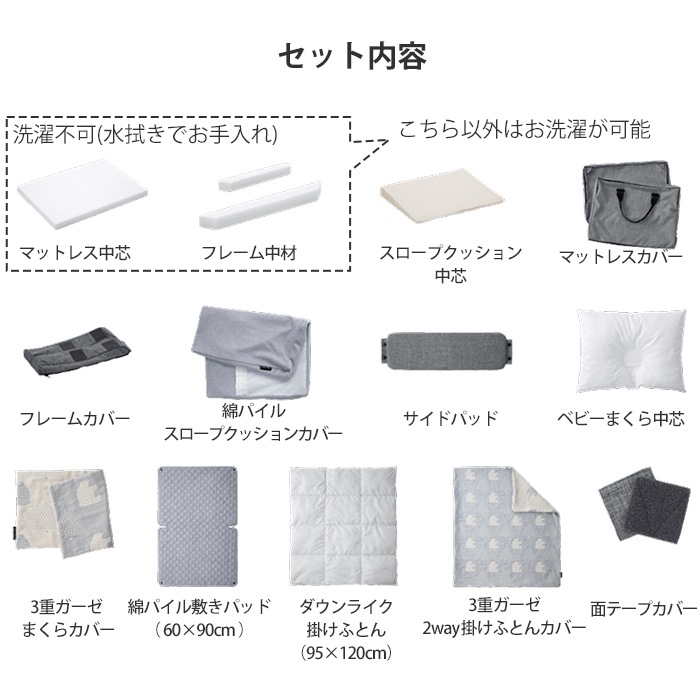 ・マットレス中芯、フレーム中材以外は洗濯可能です