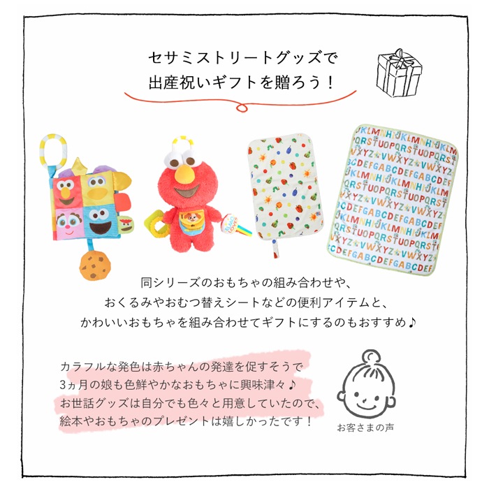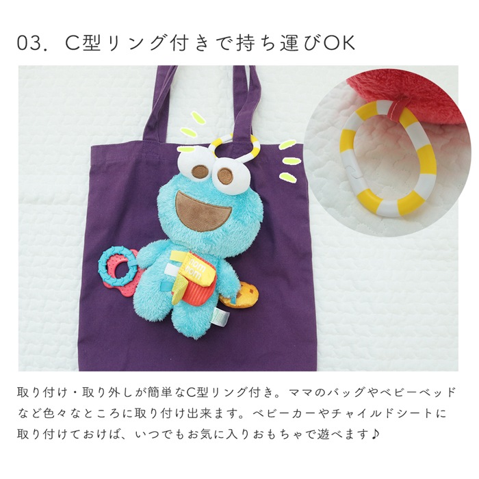 ギフト包装対応 ラッピング対応 プレゼント包装対応 おもちゃ オモチャ 玩具 トイ 音 ぬいぐるみ 人形 ベビーカー 吊り下げ 取り付け ガラガラ がらがら にぎにぎ ラトル お出かけ おでかけ ベビーグッズ ストラップ グッズ ベビー 赤ちゃん 0歳 カラフル 女の子 男の子 出産祝い クッキーモンスター エルモ セサミストリート