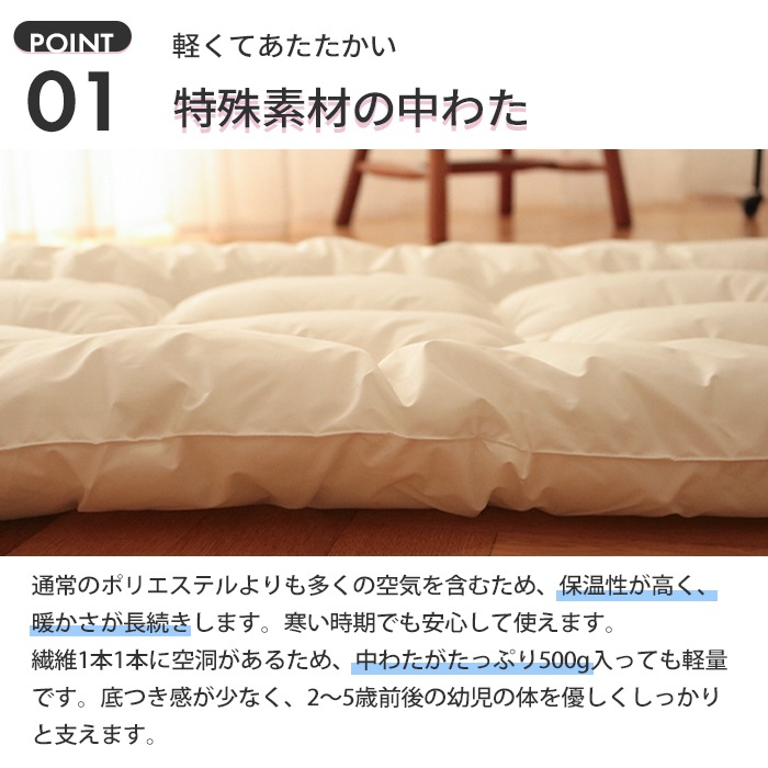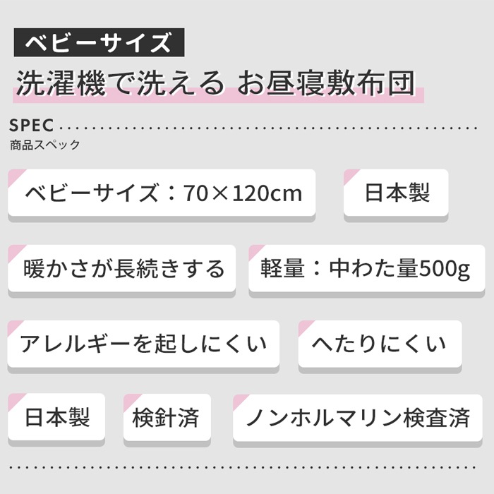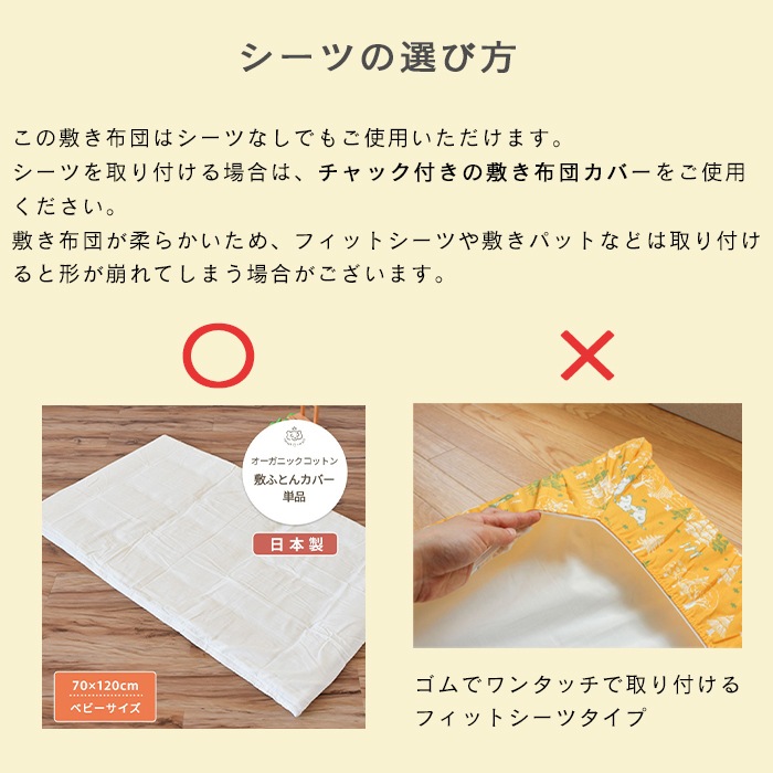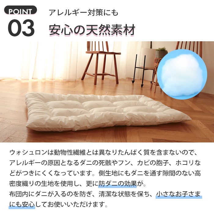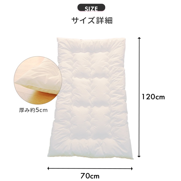 【防ダニ生地】【ウォシュロン中わた】洗濯機で洗える お昼寝敷ふとん ベビーサイズ 70×120cm