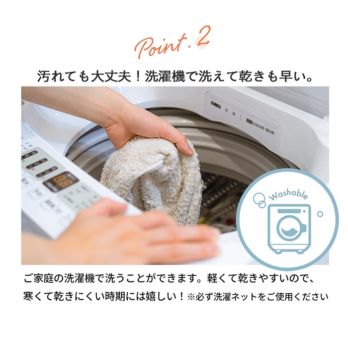 ・洗濯機で洗濯可能です(必ず洗濯ネットに入れてください)。