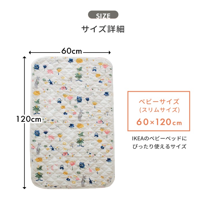 送料無料 かわいい 可愛い おしゃれ くすみカラー ホワイト 白 アイボリー ベージュ ニョロニョロ ムーミンママ ムーミンパパ リトルミイ スナフキン スティンキー スニフ 敷布団 敷きふとん 布団 敷パッド キルトパッド 敷パッド 敷きパット ダブルガーゼ ベッドパッド ペットパット 保育園 入園準備 出産準備 洗える 洗濯 洗濯機 丸洗い ゴム ベビー 赤ちゃん 新生児 キッズ 子供 子ども ベビーベッド ベビー布団 スリム